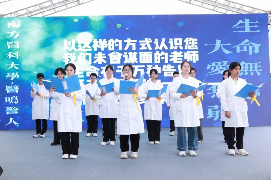 南方医科大学医学生带来诗歌朗诵《希望·无言师恩》,致敬“无言良师”为医学事业发展作出的重要贡献,表达医学生传承大爱、守护生命的坚定信念。